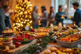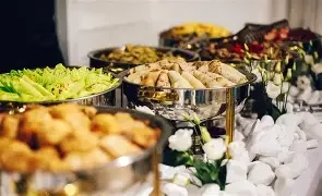 Beautiful Buffet: Plates, utensils, napkins, candles, platters, flowers